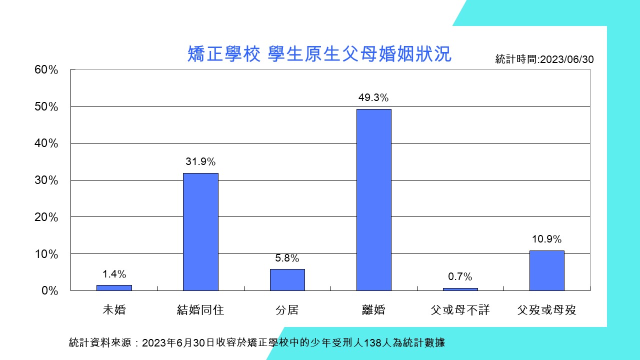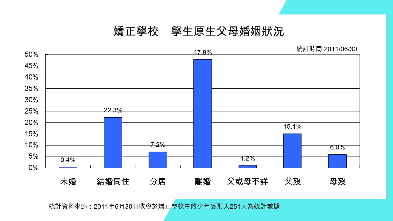 2011年6月30日 矯正學校少年受刑人251人統計數據 2023年6月30日 矯正學校少年受刑人138人統計數據